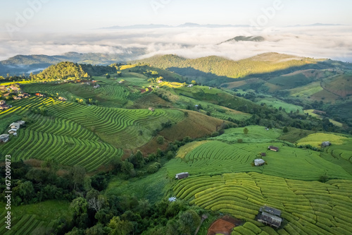 © Around Ball, Fototapeta premium Aerial view of terrace rice field at Ban Pa Bong Piang, Chiang Mai, Thailand