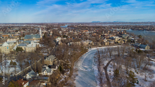 © Mircea Costina, Obraz premium Aerial view of Terrebonne city in winter, Quebec, Canada