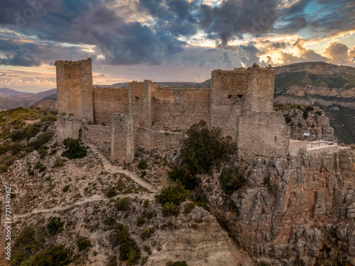 Fototapeta premium Aerial view of 15th century medieval castle ruin Castillo de Chirel in Spain...