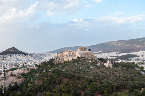 Fototapeta premium Aerial View of the Acropolis and the Athens Cityscape in Greece with Forest Trees
