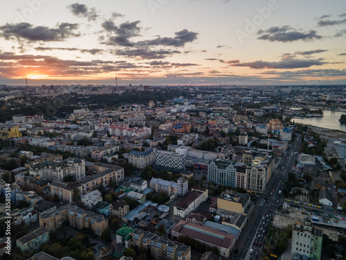 © Hennadii, Obraz premium Aerial view of the big city at sunset
