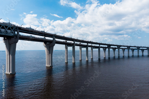 © Aleksei, Naklejka premium Aerial View of the bridge with cars through the high-speed way. Highway road line. Highway. ZSD,Western High Speed Diameter