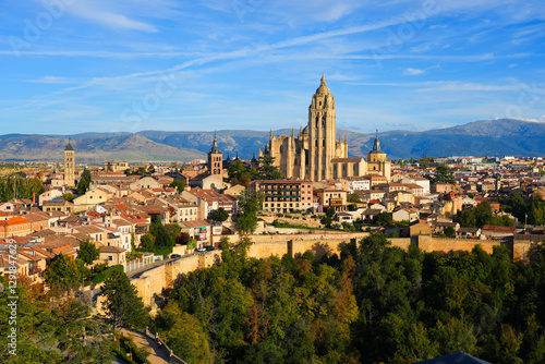 © Alexandre ROSA, Obraz premium Aerial view of the Cathedral of Segovia dedicated to the Assumption of the Virgin Mary and to Saint Fructus in Castile and León, Spain