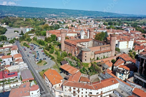 © DVisions, Fototapeta premium aerial view of the center of the city of Ivrea with The Castle of Ivrea also known as "Castle of the Red Towers" in the center. Ivrea, Turin, Italy