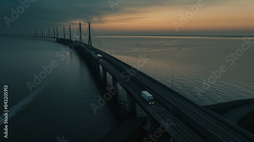 © SHI, Fototapeta premium Aerial view of the Channel Bridge, as cars cross at sunset