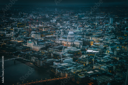 © James, Fototapeta premium Aerial view of the City of London at dusk