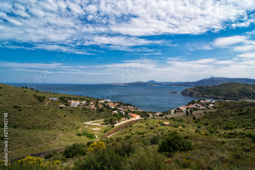 © gusenych, Fototapeta premium Aerial view of the Colera Mediterranean coastline in Costa Brava, Colera, Catalonia, Spain