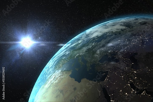 © vectorfusionart, Fototapeta premium Aerial view of the Earth in the space