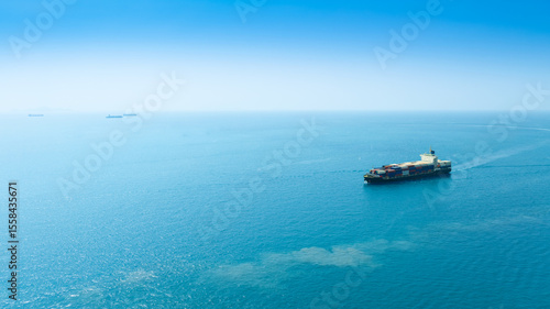 © Photo Sesaon, Naklejka premium Aerial view of the freight shipping transport system cargo ship container. international transportation Export-import business, logistics, transportation industry concepts