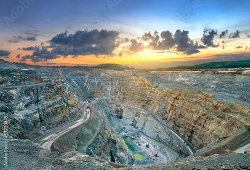 © JT Jeeraphun, Fototapeta premium Aerial view of the gold mining openings by the work of many machines