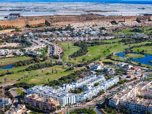 © Mike Workman, Naklejka premium Aerial View of the Golf Course and New Condo Construction Site in Almerimar, on the Mediterranean Coast of Andalusia