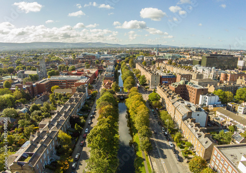 © Giovanni, Fototapeta premium Aerial view of the Grand Canal in Dublin, Drone photography