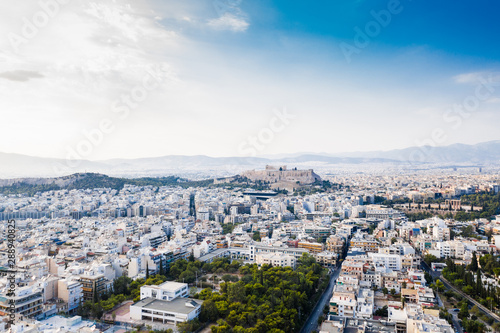 Fototapeta premium Aerial view of the historical city centre of Athens with the Acropolis in the shot.