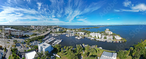 Obraz premium Aerial view of the Indian River, yacht harbor, and historic downtown...