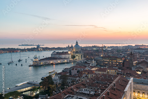 © Sen, Naklejka premium Aerial view of the landscapes during sunset in Venice, Italy