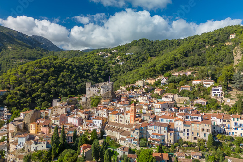 © Mazur Travel, Obraz premium Aerial view of the medieval village of Roquebrune-Cap-Martin in French Riviera