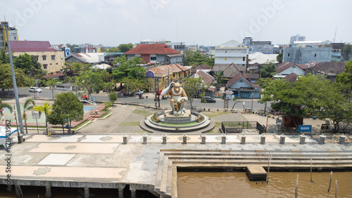 Obraz premium Aerial view of the monkey statue as a typical monument in Banjarmasin in the...