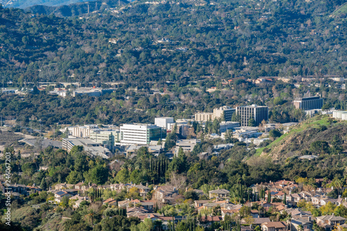 © Kit Leong, Naklejka premium Aerial view of the Mountains and Altadena area