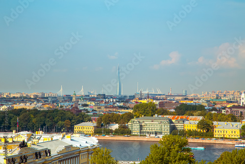 © lizavetta, Naklejka premium Aerial view of the Neva River and Vasilyevsky Island from the colonnade of St. Isaac's Cathedral.