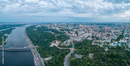 © LALSSTOCK, Fototapeta premium Aerial view of the new glass bridge in Kiev at night