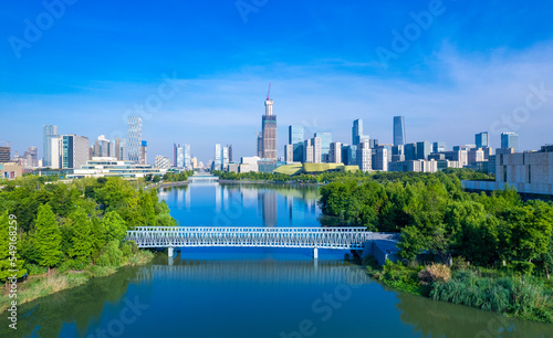 © Weiming, Naklejka premium Aerial view of the new town in Eastern Ningbo, Zhejiang province
