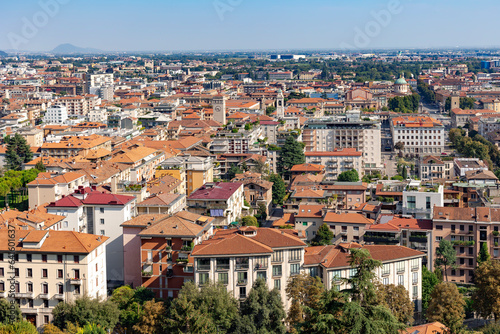 Obraz premium Aerial view of the old town Bergamo in northern Italy with red tiled roofs of...