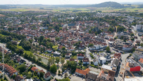 © Thekla, Naklejka premium Aerial view of the old town of the city Korbach in Germany on an overcast day in afternoon