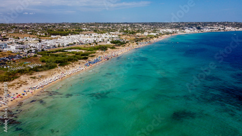 Obraz premium Aerial view of the Pescoluse Beach, aka Maldives of Salento, in the south of...