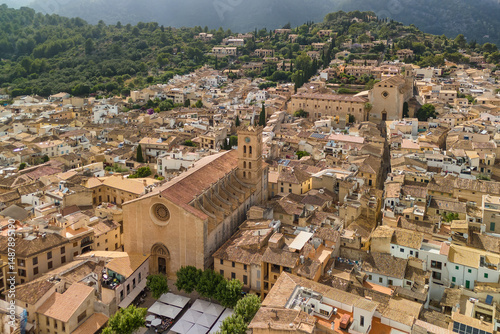 Naklejka premium Aerial view of the picturesque town of Pollensa in Mallorca, Spain.
