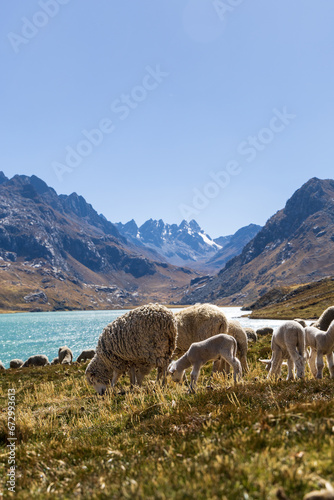 © Erik González, Naklejka premium Aerial view of the Querococha lagoon, in the Ancash region.