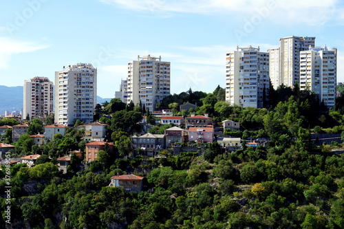 Obraz premium Aerial view of the skyscrapers above green park in the Croatian town of Rijeka
