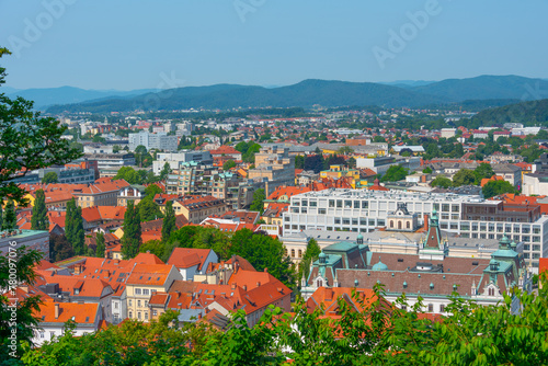 Obraz premium Aerial view of the Slovenian capital Ljubljana