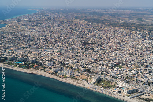 Naklejka premium Aerial view of the Tunisian coast and the city of Mahdia.