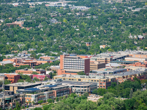 © Kit Leong, Naklejka premium Aerial view of the University of Colorado Boulder