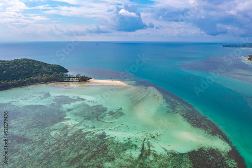 © pierrick, Fototapeta premium Aerial view of Thong Sala pier, boat and koh Tae Nai in koh Phangan, Thailand