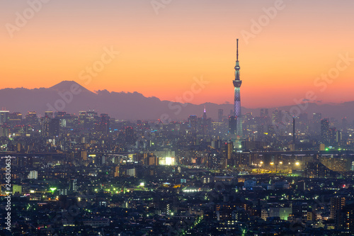 Obraz premium Aerial view of Tokyo city and Skytree tower at twilight in Japan