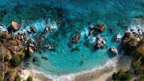 Fototapeta premium Aerial View of Tortola Island: Serene Overhead Ocean and Pristine Beaches in...