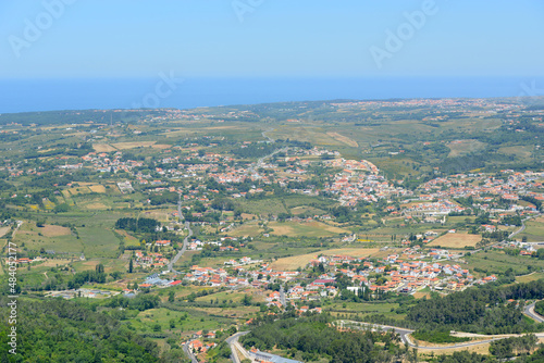 © Wangkun Jia, Fototapeta premium Aerial view of town of Sintra and landscape from top of Castle of the Moors, Sintra, Lisbon District, Portugal.