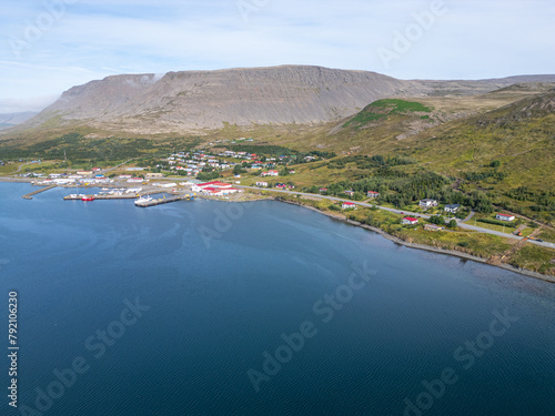 © Gestur, Obraz premium Aerial view of town of Talknafjordur in the Icelandic westfjords