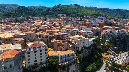 Obraz premium Aerial view of Tropea town on a cliff overlooking the Tyrrhenian sea in...