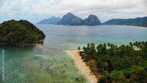Fototapeta premium Aerial view of tropical beach with palm trees and islands