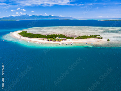 Fototapeta premium Aerial view of tropical island surrounded by turquoise water