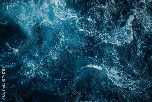 © mehaniq41, Fototapeta premium Aerial view of turbulent ocean waves. Neural network AI generated