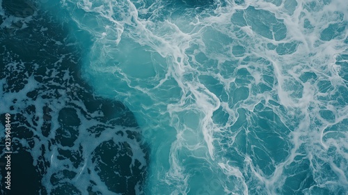 © Yopi, Obraz premium Aerial View Of Turquoise Ocean Waves, White Foam Texture