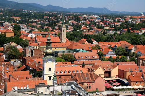 © jelena990, Obraz premium Aerial view of uptown in Zagreb, Croatia on a sunny day.