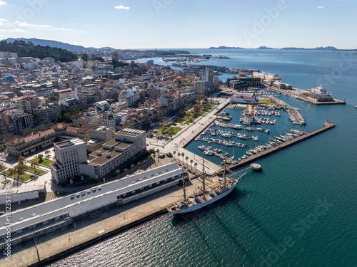 © Oleksandr, Fototapeta premium Aerial view of Vigo city center in Pontevedra, Galicia, Spain. Coastal city on the Ria de Vigo inlet, Capital Comarca.