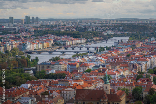 © diegograndi, Obraz premium Aerial view of Vltava River and Prague Bridges - Prague, Czech Republic