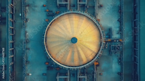 Fototapeta premium Aerial View of Water Treatment Plant for Sewage Treatment and Wastewater...