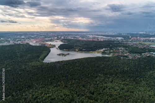 © nordroden, Fototapeta premium Aerial view of wheat fields, meadow, forest and village in rural Russia.