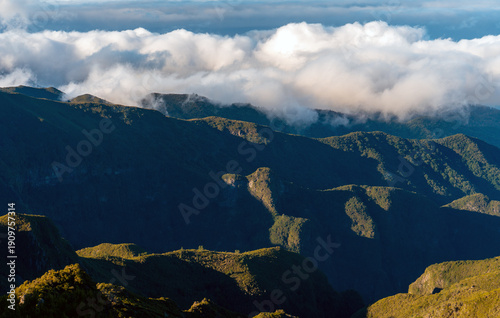© M-Production, Fototapeta premium Aerial view of winding mountain road above the clouds.
